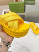 GG waterproof platform slippers yellow fabric