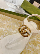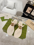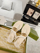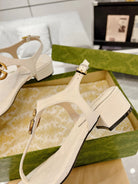 GC Double G Block Heel Thong Sandals White Leather 292408
