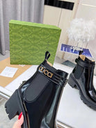 GG ankle boots black cowhide gold buckle