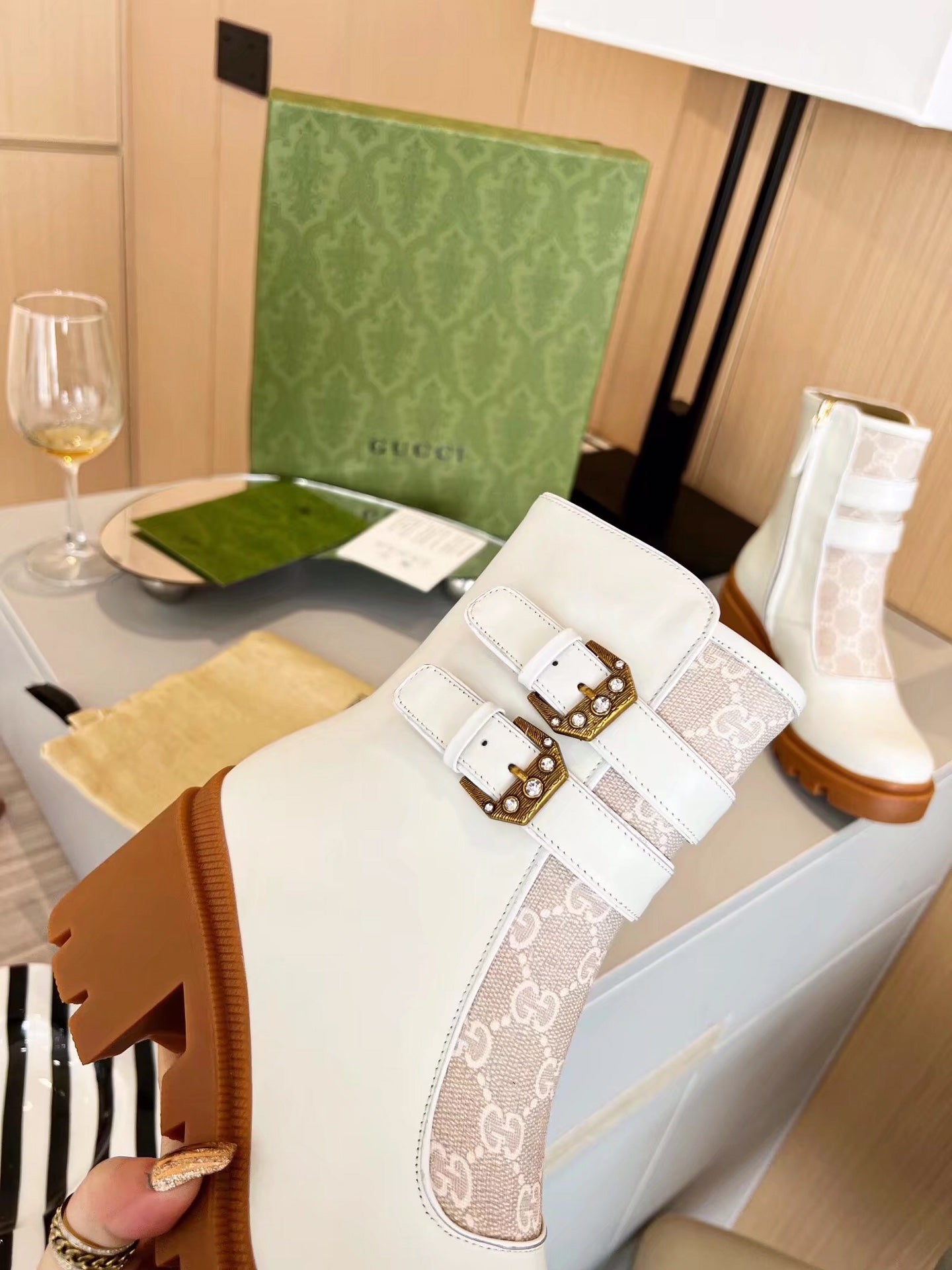 GG ankle boots white caramel cowhide