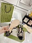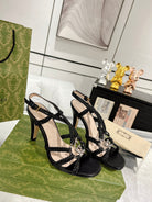 GG CRYSTAL HIGH HEEL SANDAL BLACK CALFSKIN SPECIAL