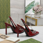 GG CRYSTAL HIGH HEEL SANDAL SCARLET LAMBSKIN