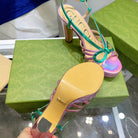 GG HIGH HEEL SANDAL HOT PINK AND JADE GREEN LAMBSKIN