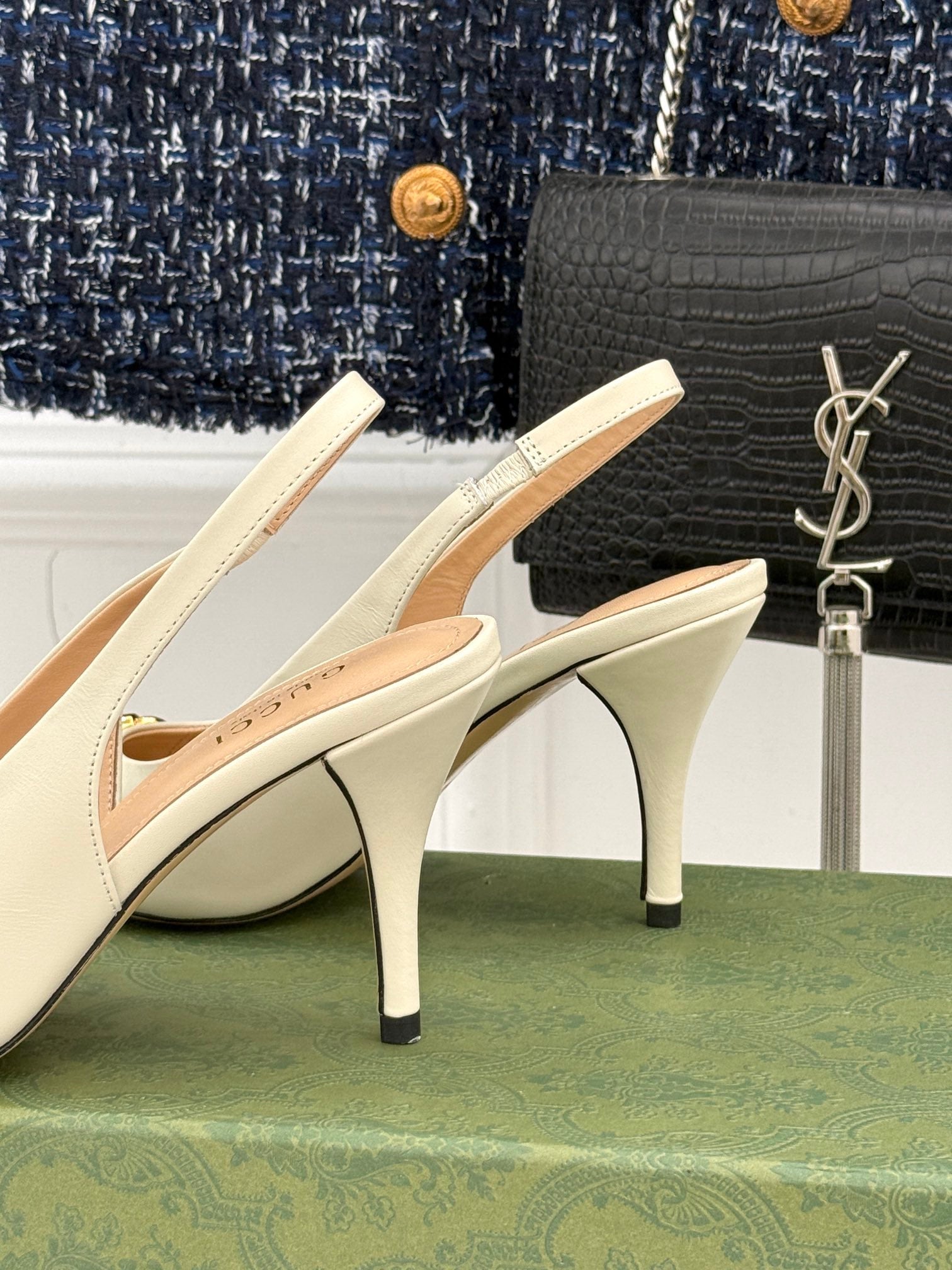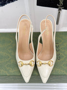 GG Horsebit Slingback 85MM Cream Leather Point Toe
