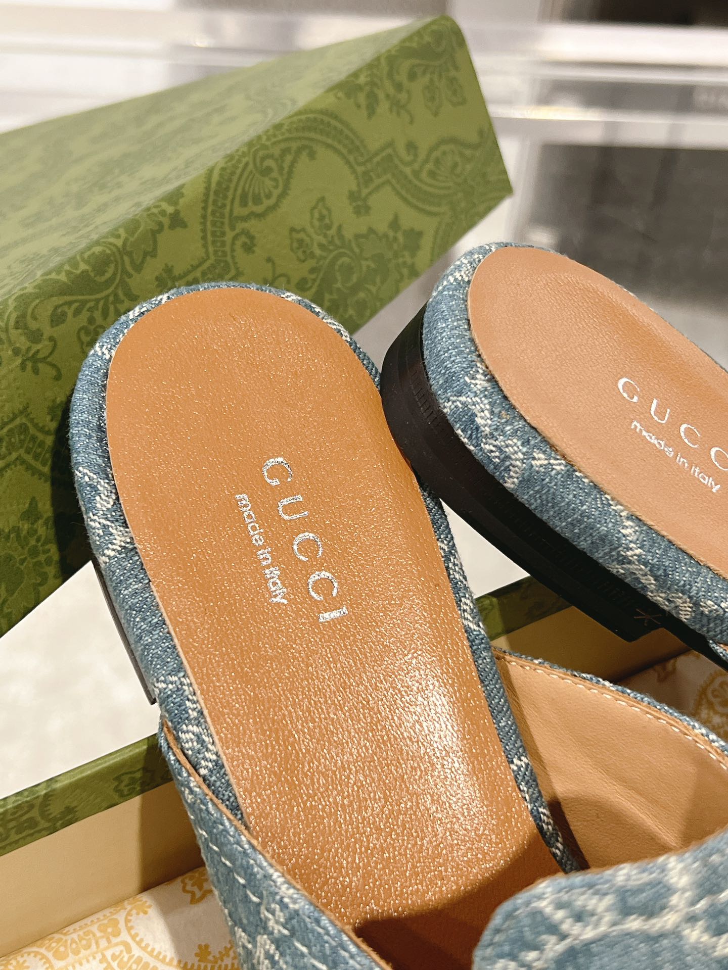 MEN'S MULE WITH HORSEBIT IN SAPHIRE BLUE MONOGRAM JACQUARD FABRIC