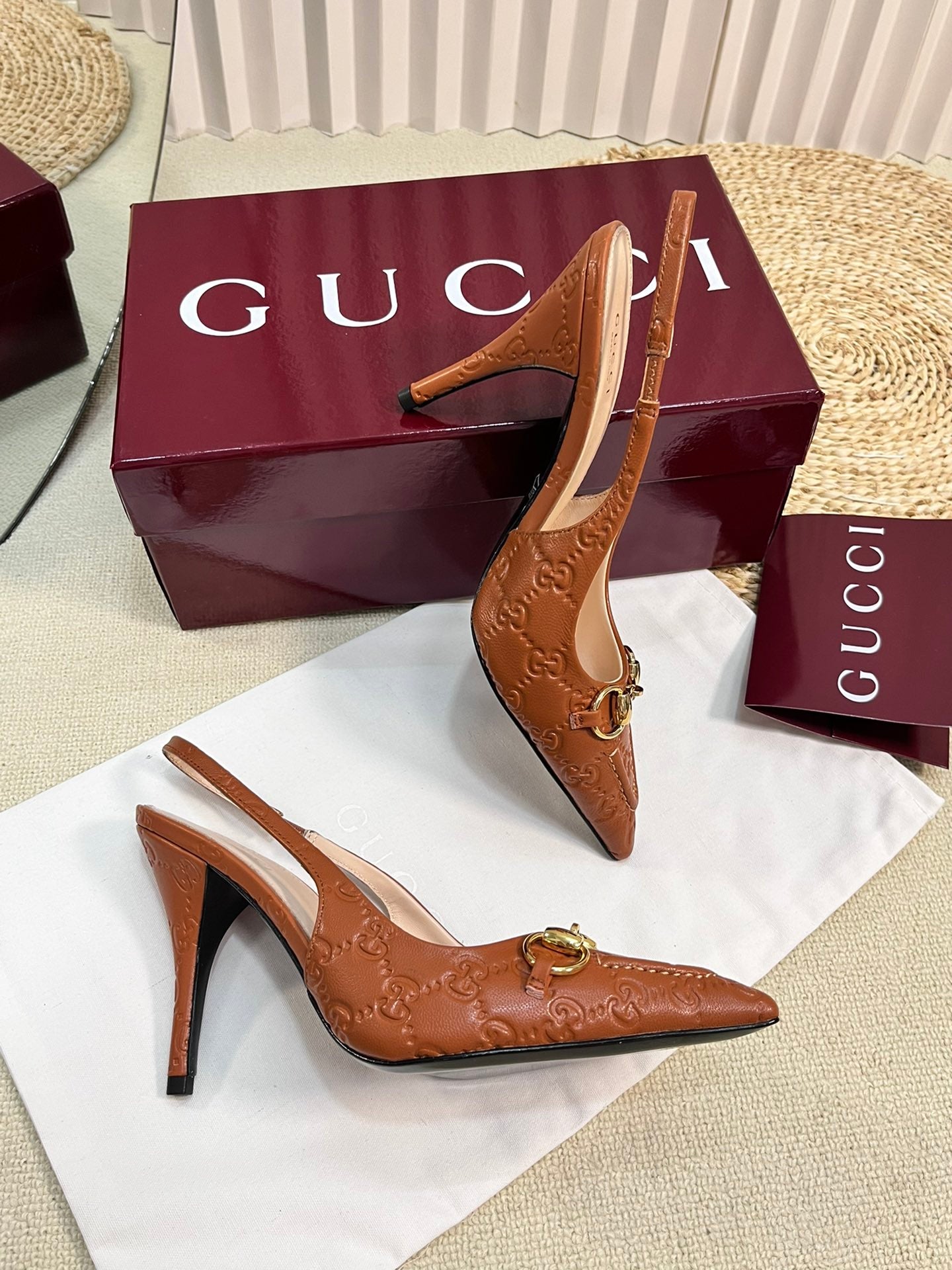 GC Horsebit Slingback Pump 100mm Brown Embossed Sheepskin 294578
