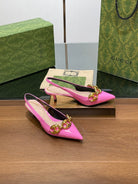 GG MID-HEELED SLINGBACK 4.5 CM IN FUSICA PINK GLOSSY CALFSKIN