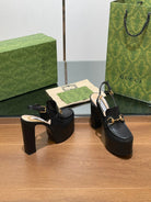 GG WOMEN'S HORSEBIT PLATFORM SLINGBACK IN BLACK CALFSKIN