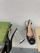 GG WOMEN'S HORSEBIT SLINGBACK 95MM IN BLACK CALFSKIN WITH RHINSTONES