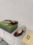 GG WOMEN'S HORSEBIT SLINGBACK IN WINE RED CALFSKIN WITH RHINSTONES