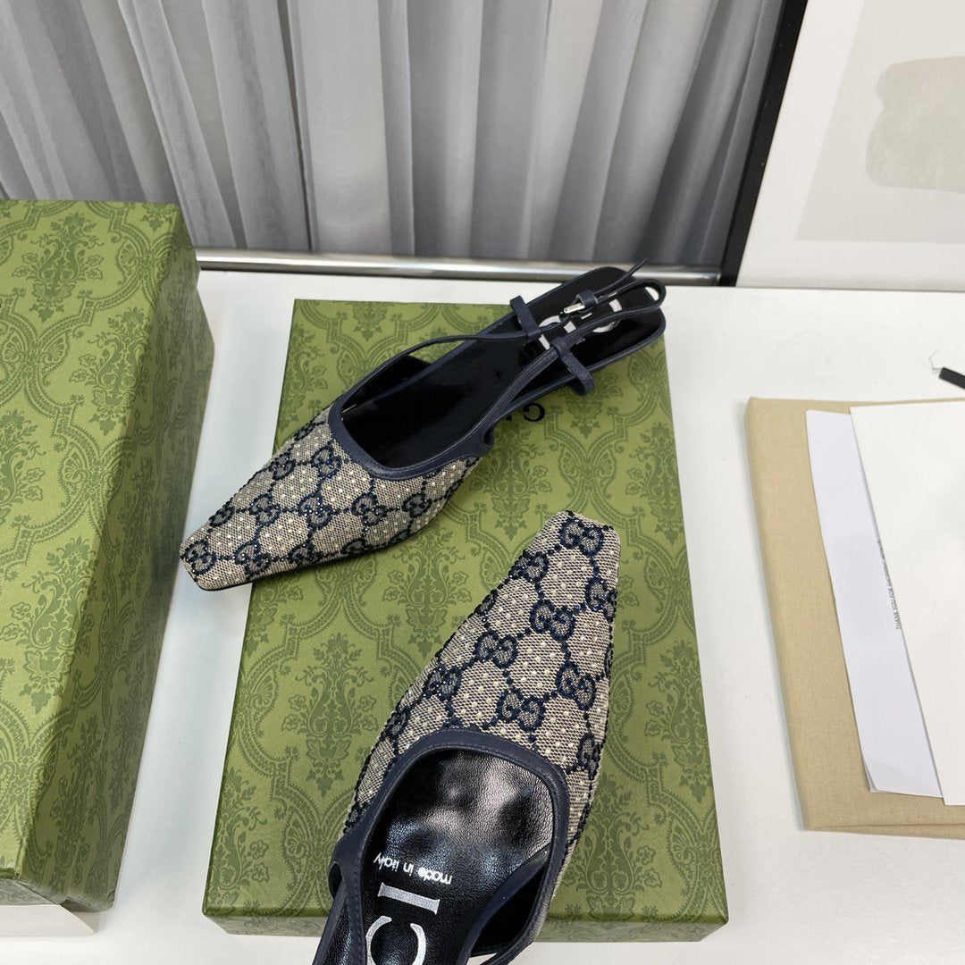 sling back pump 40 beige and blue canvas