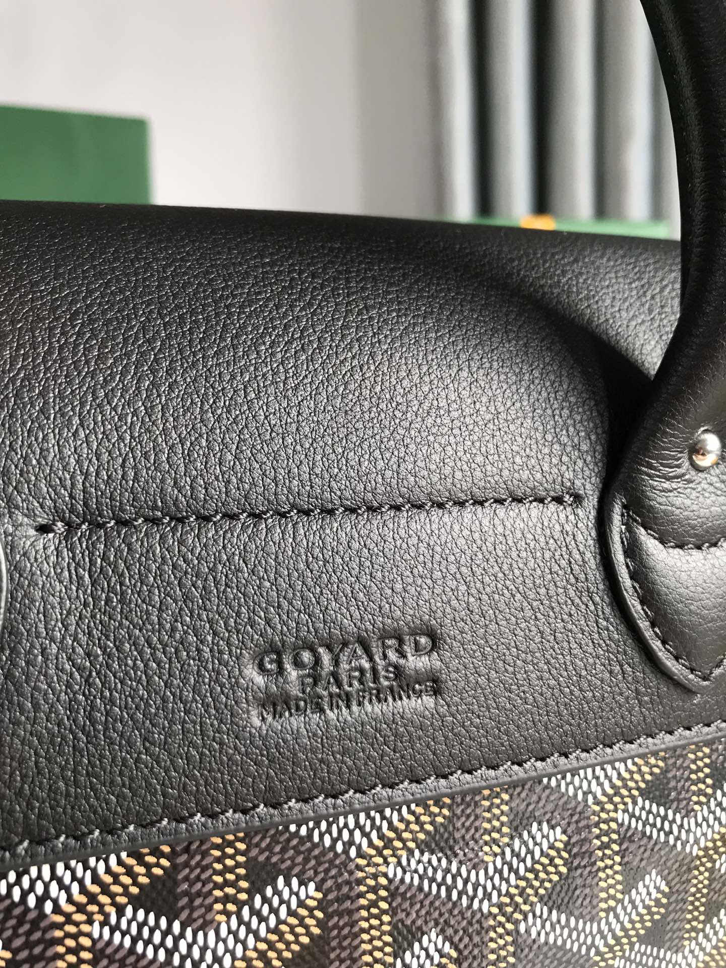 SAINT LOUIS PM 34 IN GREY MIX GREEN GOYARDINE CANVAS AND CALFSKIN