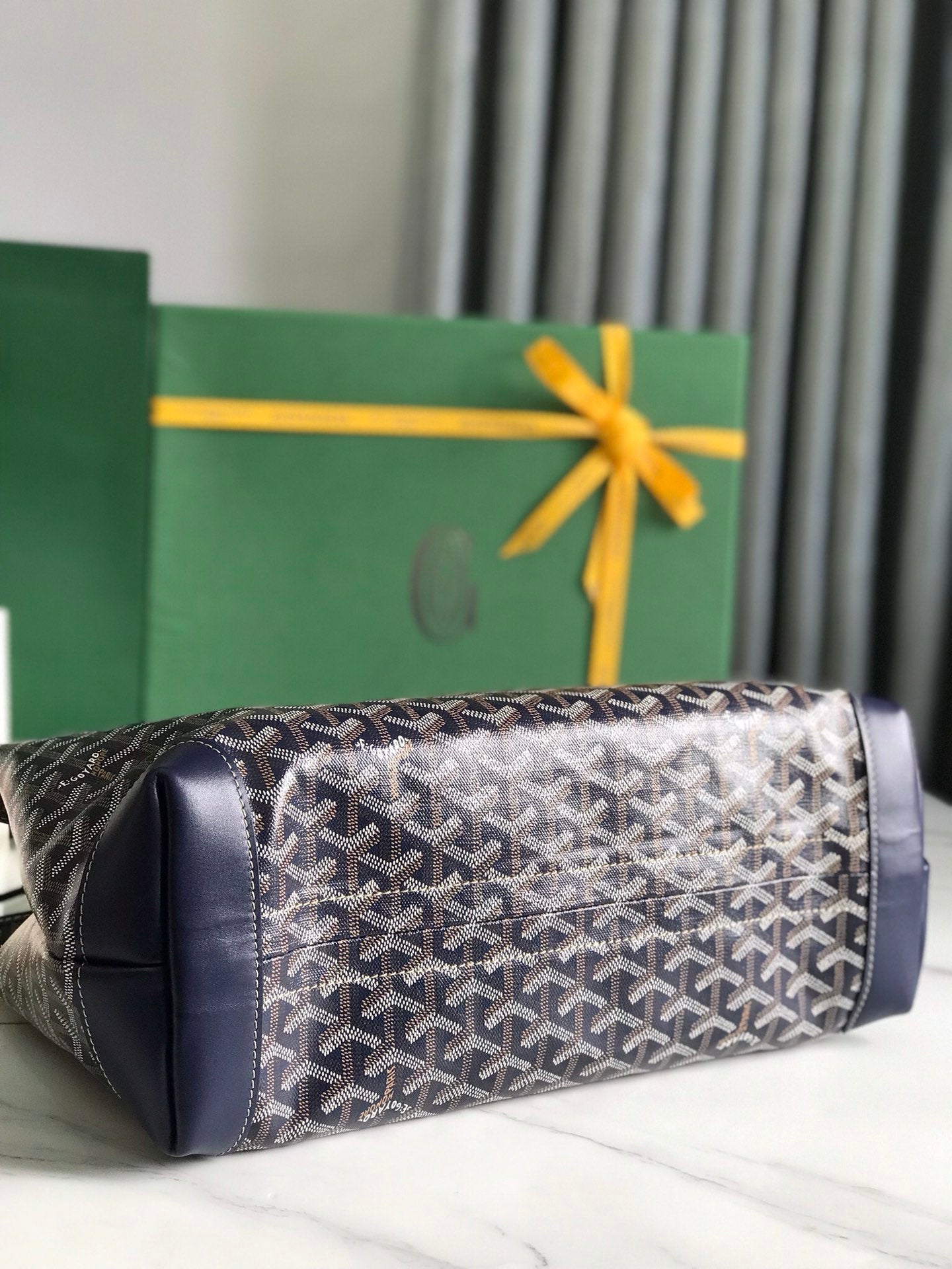 ROUETTE STRUCTURÉ MINI BAG 21 IN NAVY BLUE GOYARDINE CANVAS AND CALFSKIN