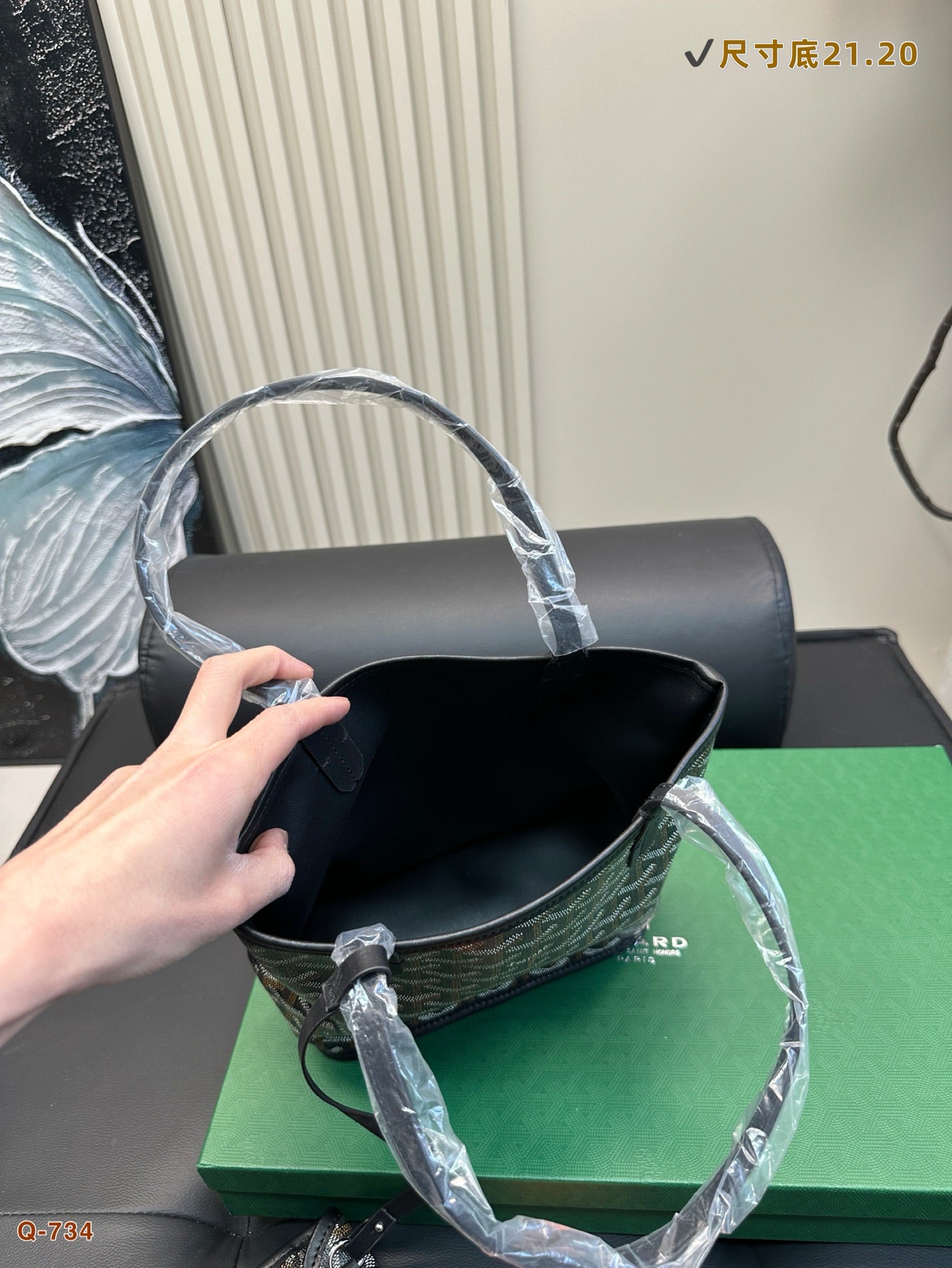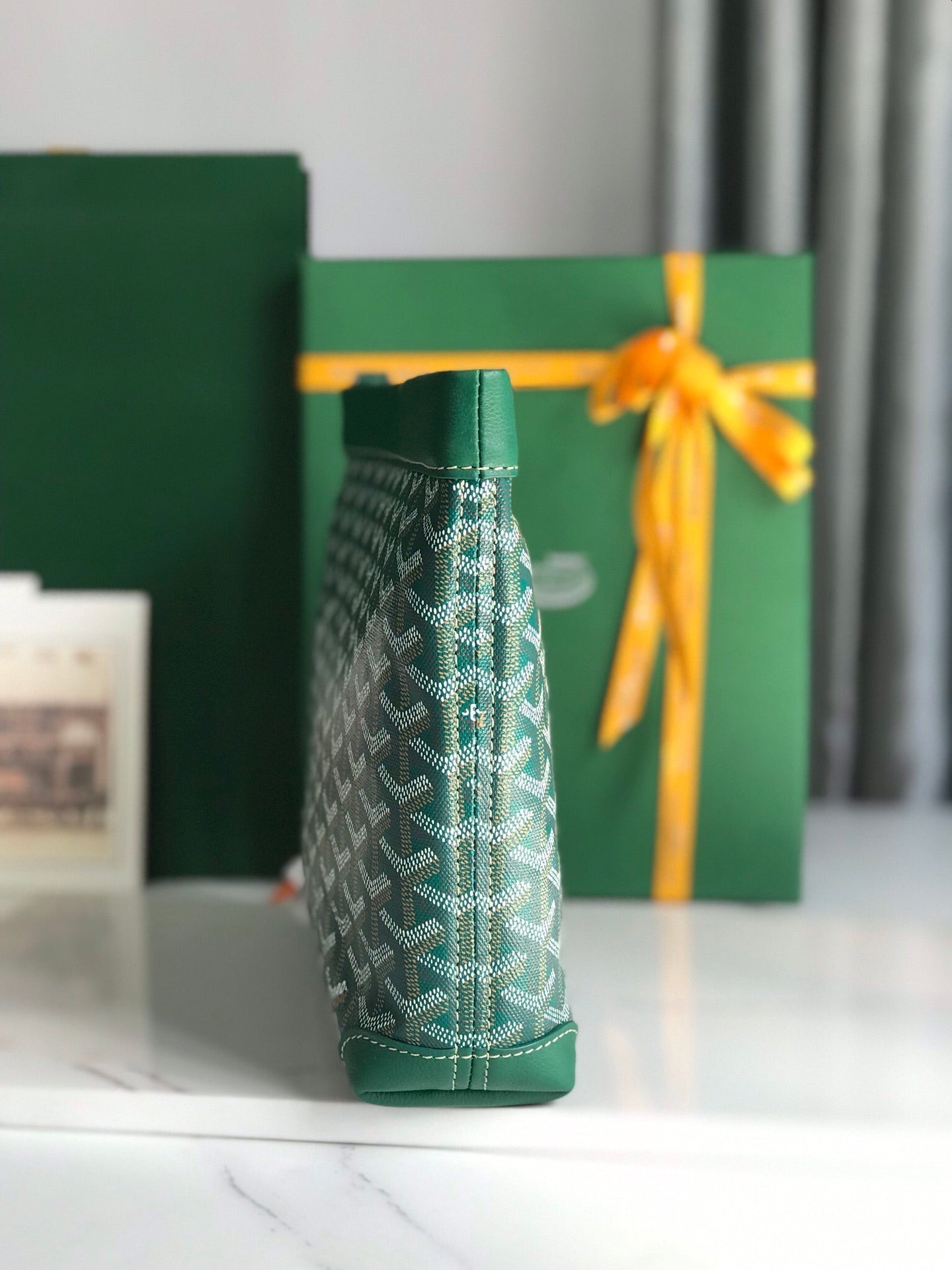 BELLECHASSE BIAUDE PM BAG 36 IN GREEN GOYARDINE CANVAS AND CALFSKIN TRIM
