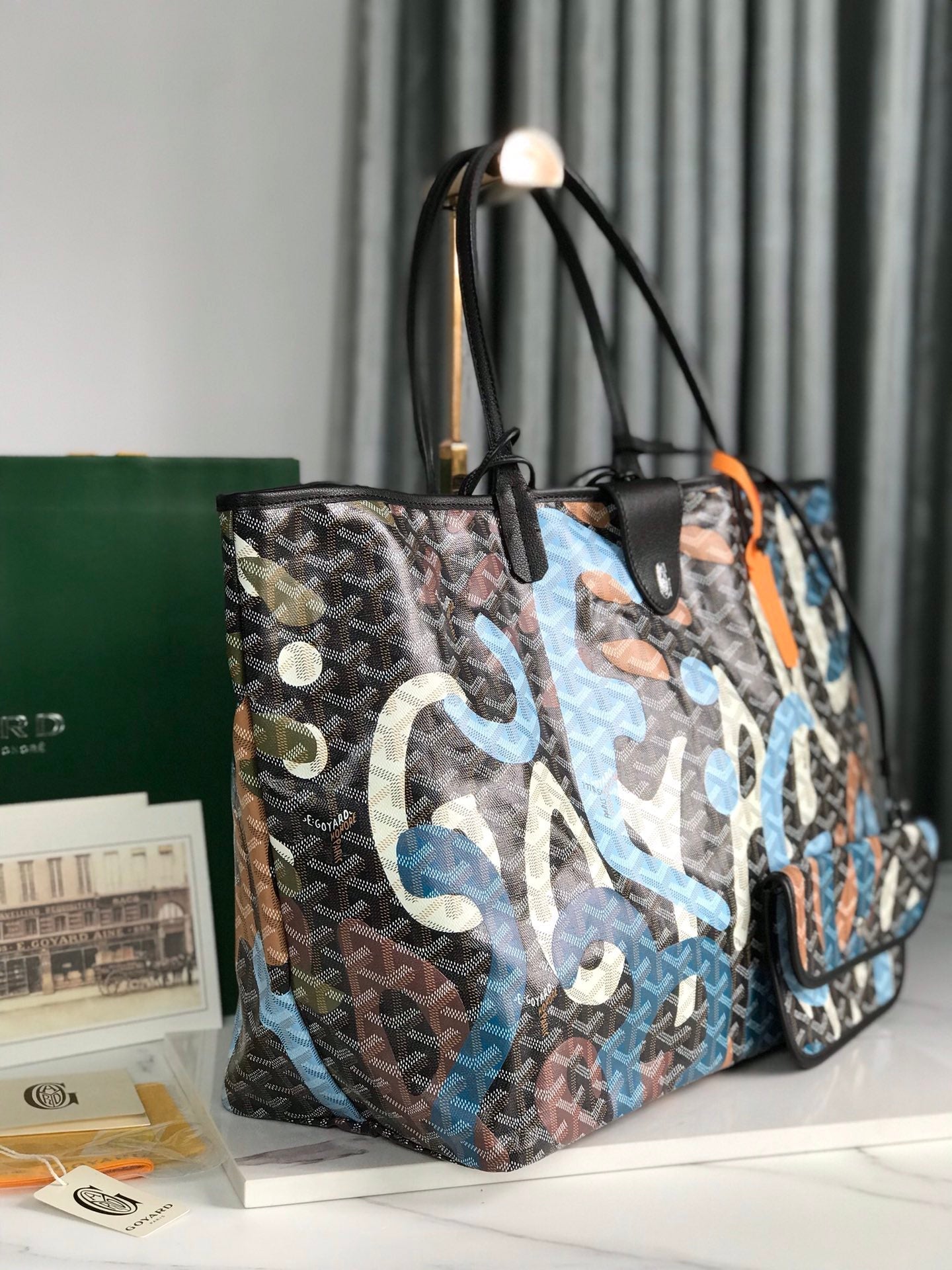 SAINT LOUIS GM BAG 40 IN BLUE LETTRES CAMOUFLAGE GOYARDINE CANVAS
