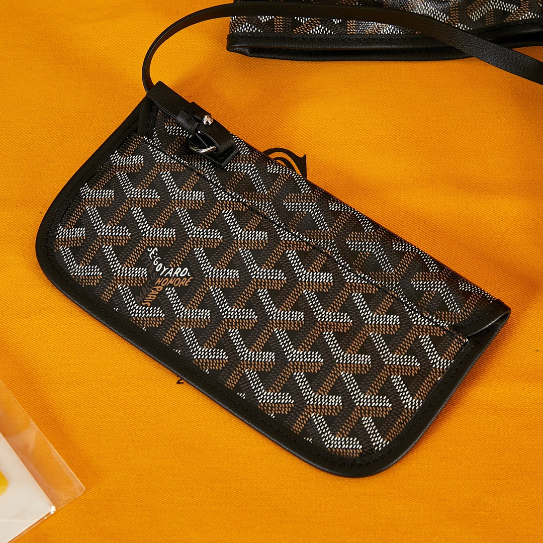 HARDY PM BAG 40 IN BLACK GOYARDINE CANVAS AND TAN TAURILLON LEATHER TRIM