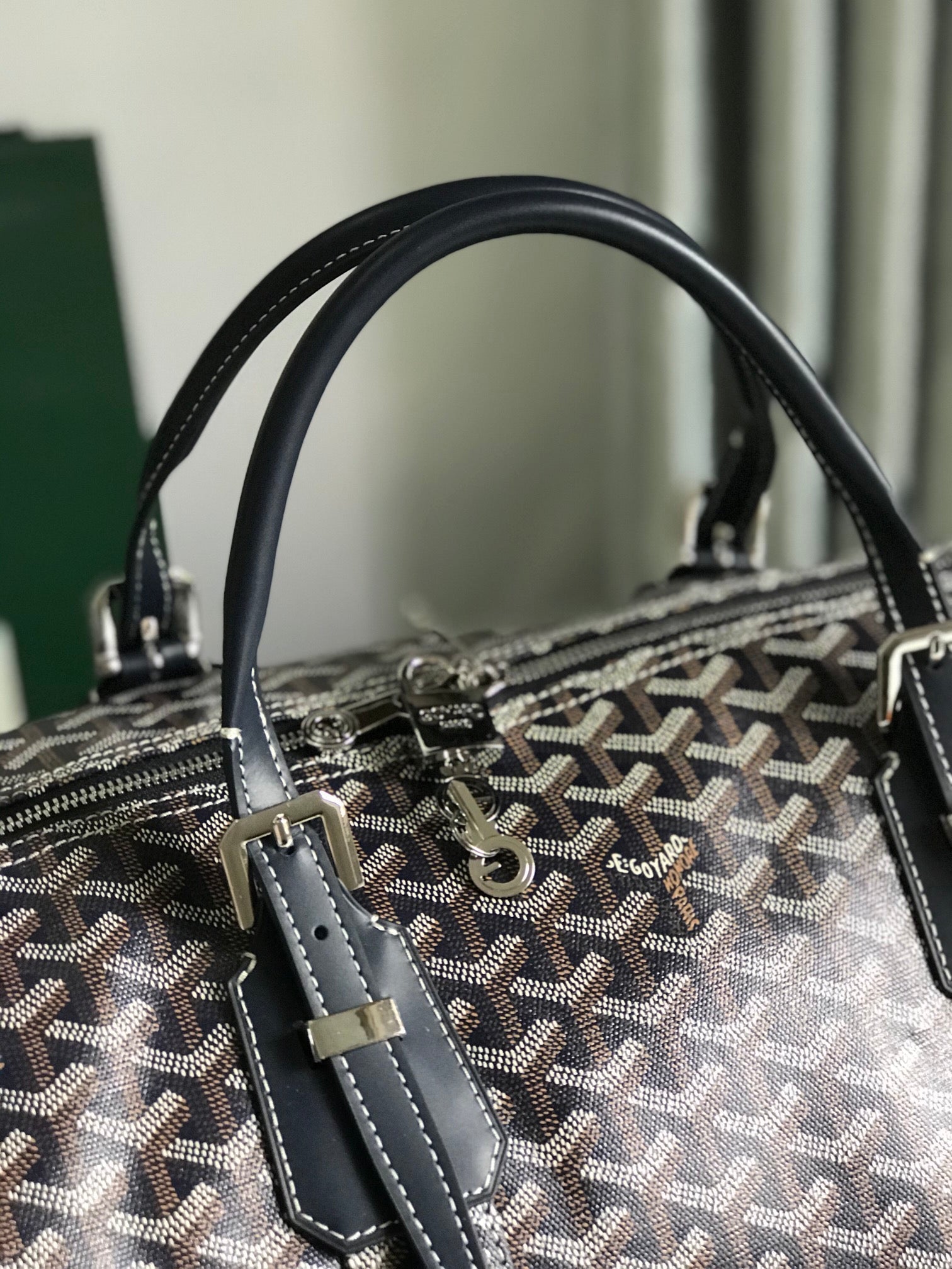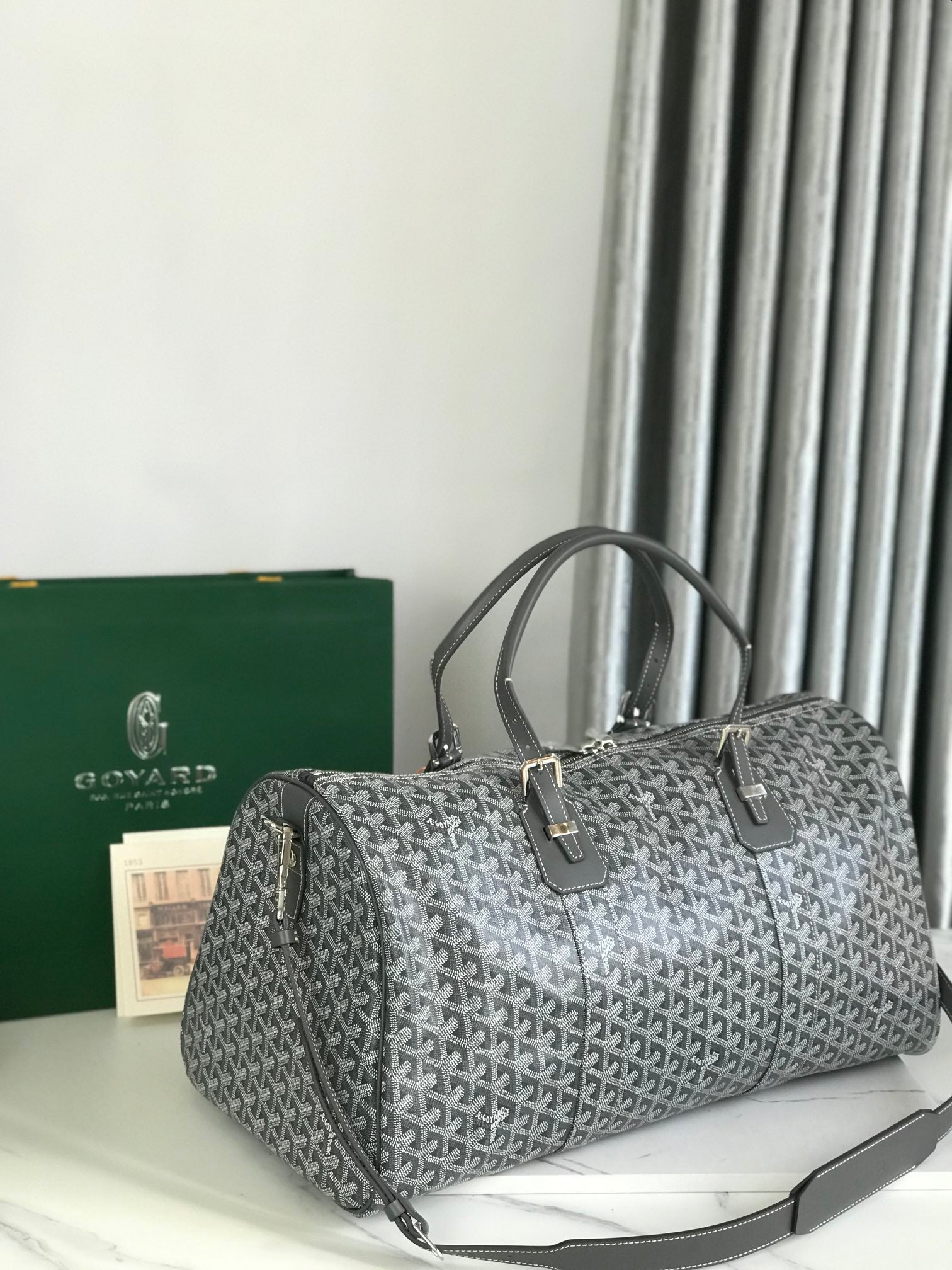 BOSTON 50 BAG IN GRAY GOYARDINE CANVAS AND CALFSKIN TRIM