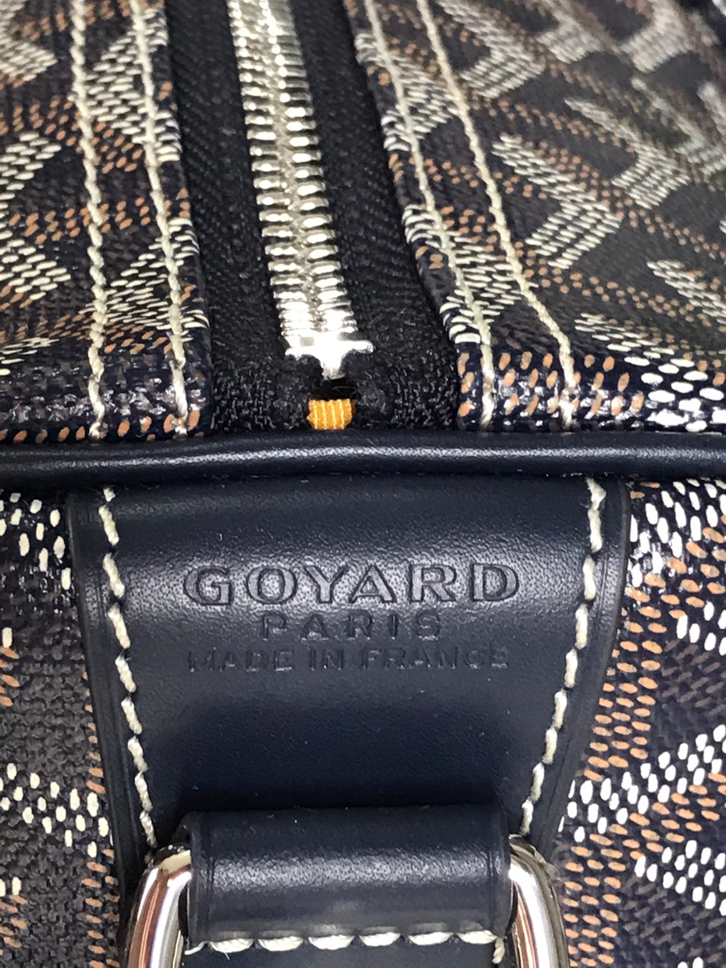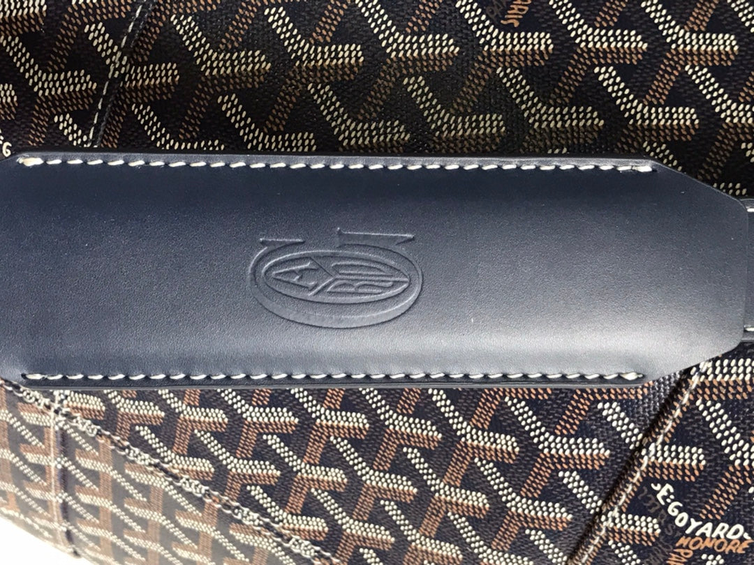 HARDY PM BAG 40 IN NAVY BLUE GOYARDINE CANVAS AND BLACK TAURILLON LEATHER TRIM