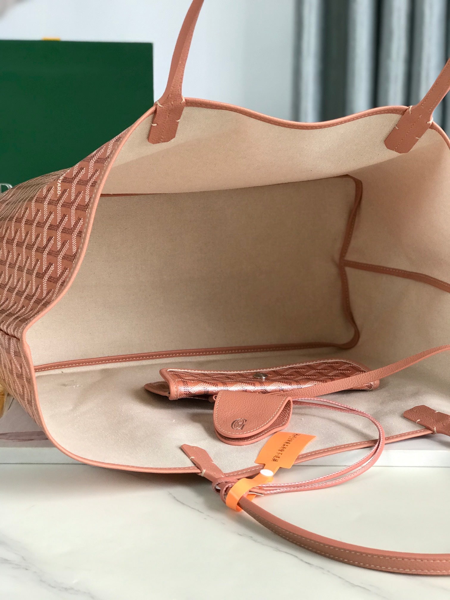 ANJOU MINI BAG 20 IN BABY PINK CALFSKIN AND GOYARDINE CANVAS