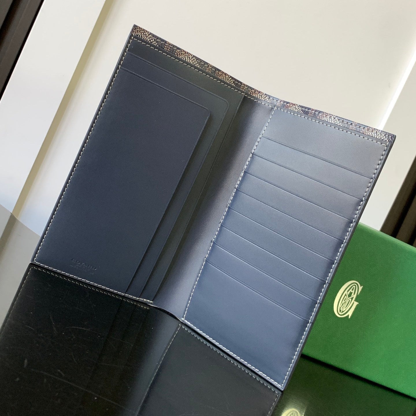 RICHELIEU CHECKBOOK WALLET 19 IN NAVY BLUE GOYARDINE CANVAS AND CALFSKIN