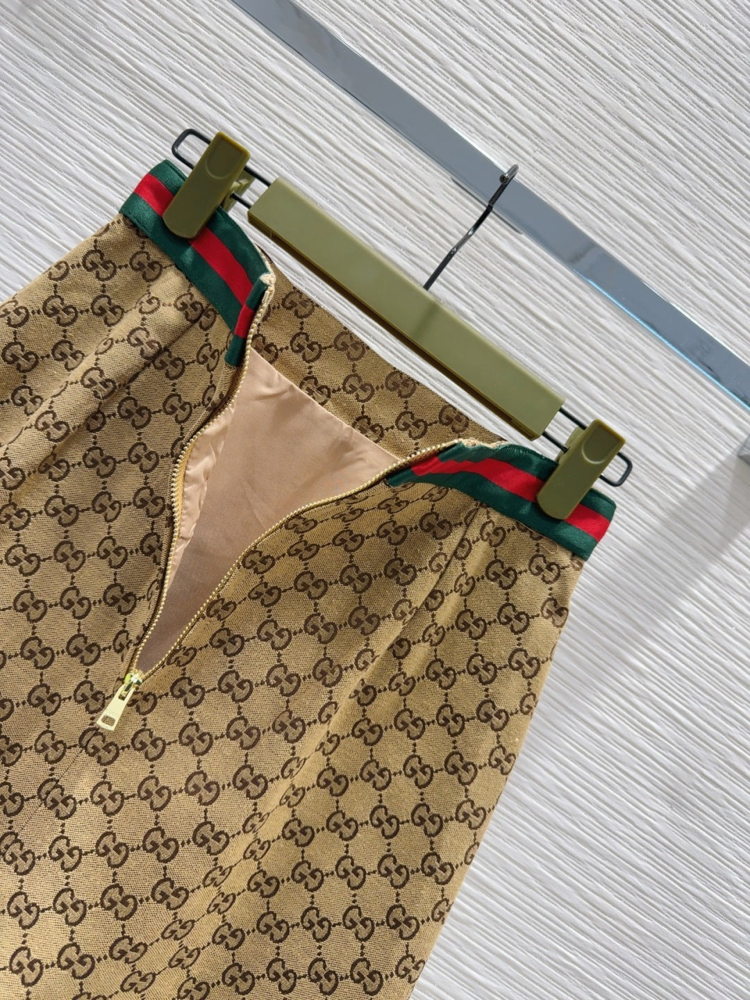 GG Beige Monogram Crystal Embellished Mini Skirt