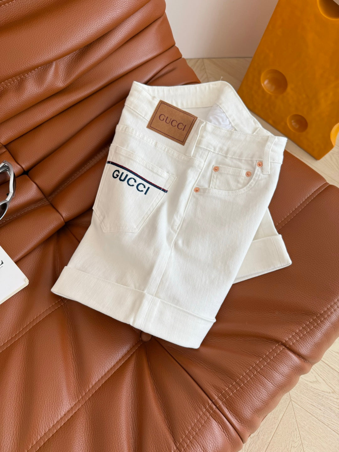 Gucci 25 Logo Embroidered Rolled-hem Denim Shorts Cotton