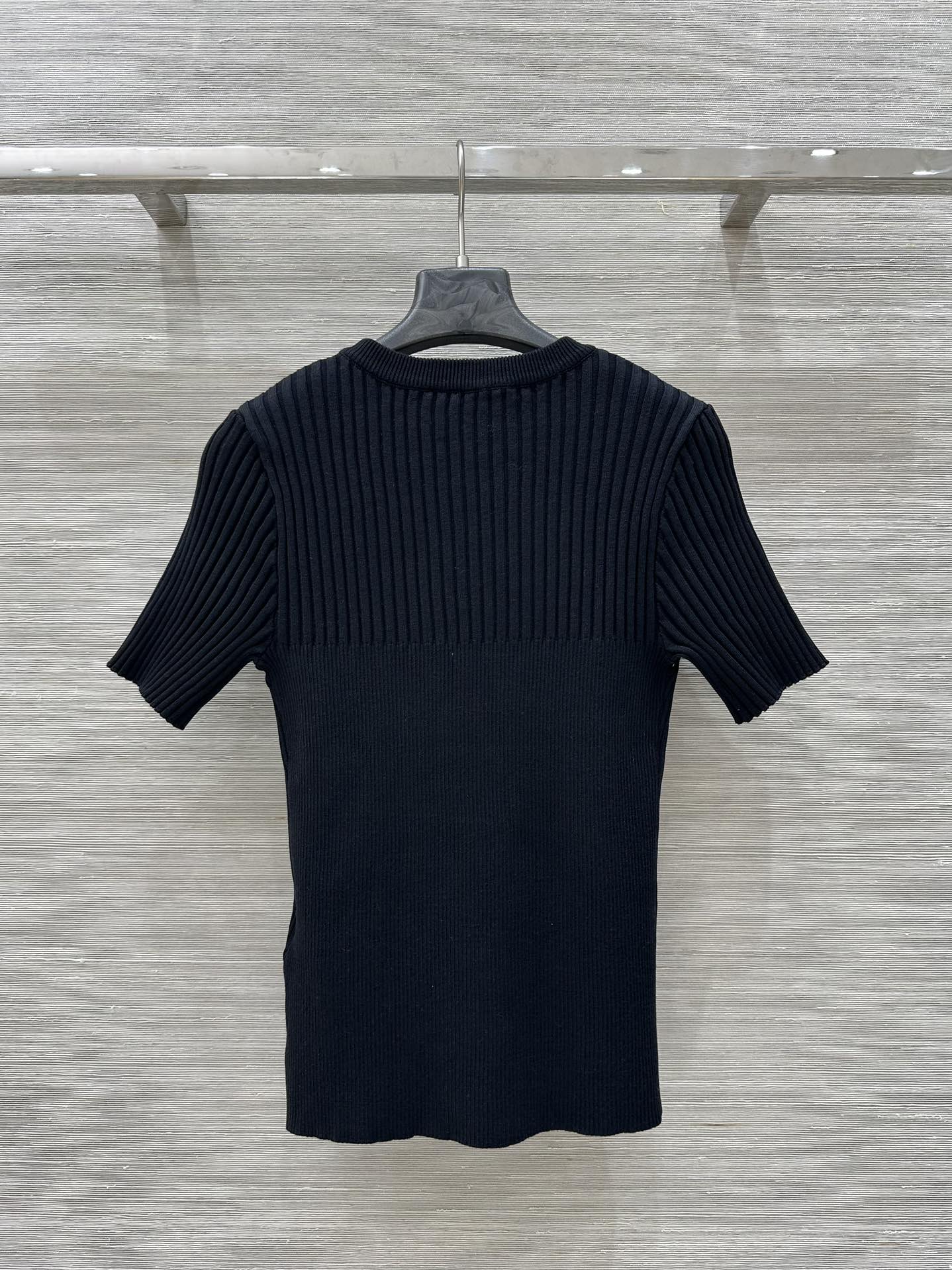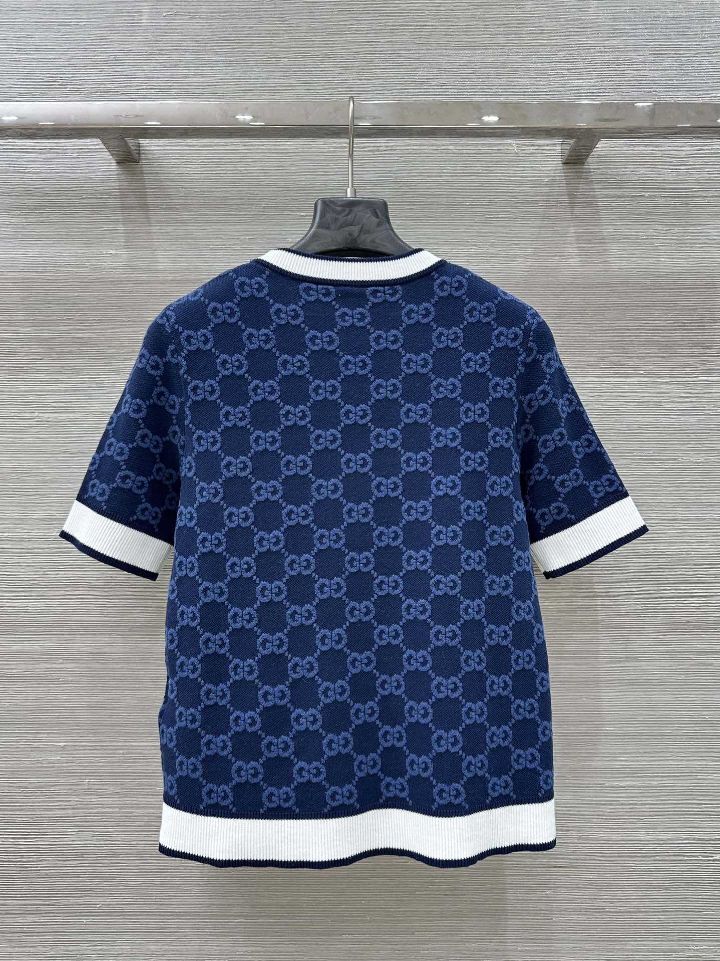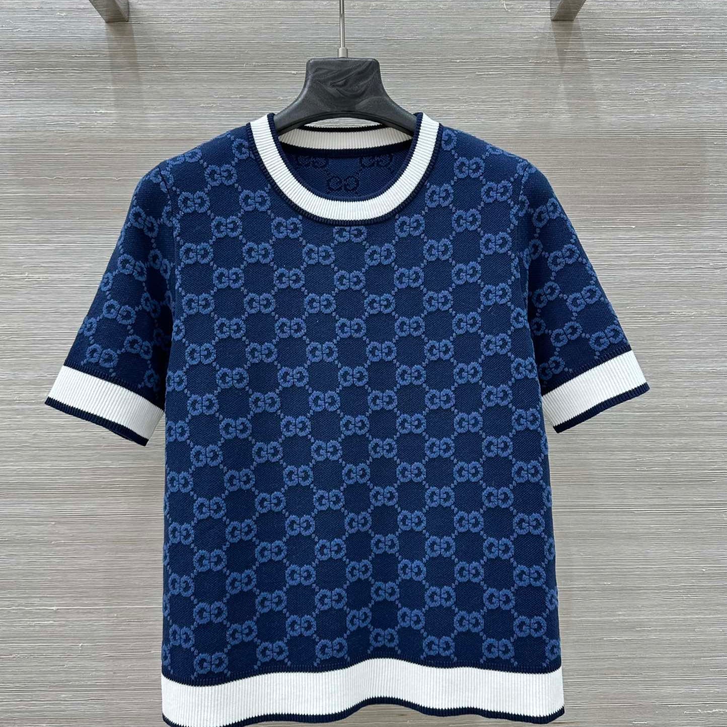 Gucci 2025 Knitted Round Neck Short-sleeved Top Blue Gray Cotton