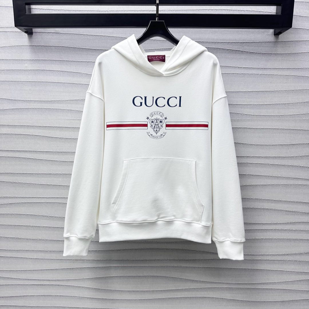 GG White Blue Printed Cotton Jersey Hooded Sweatshirt