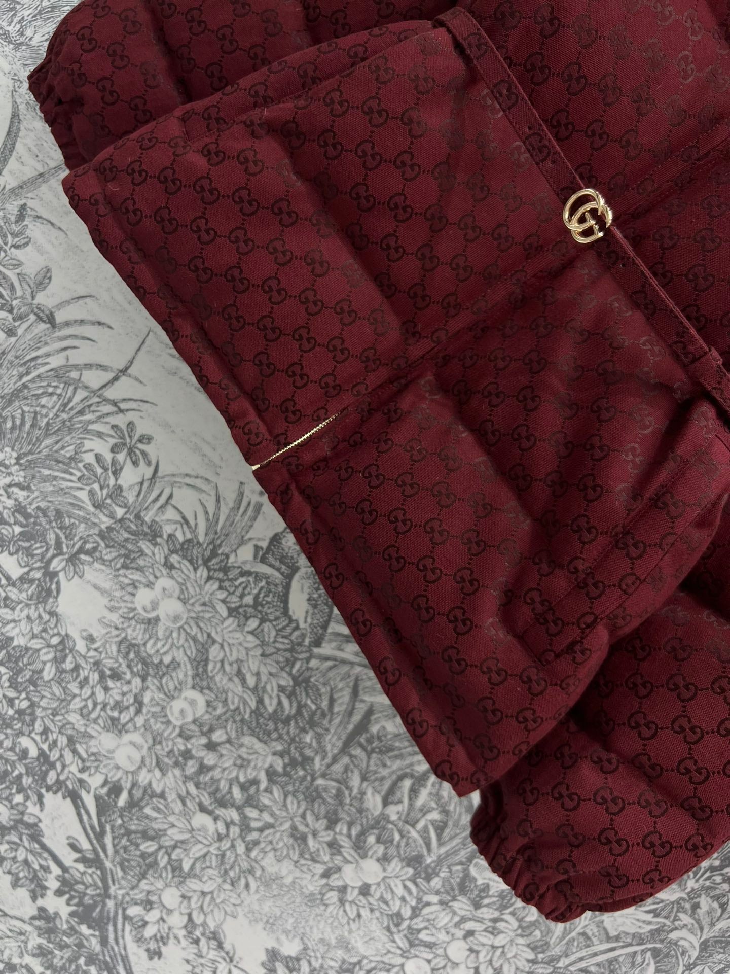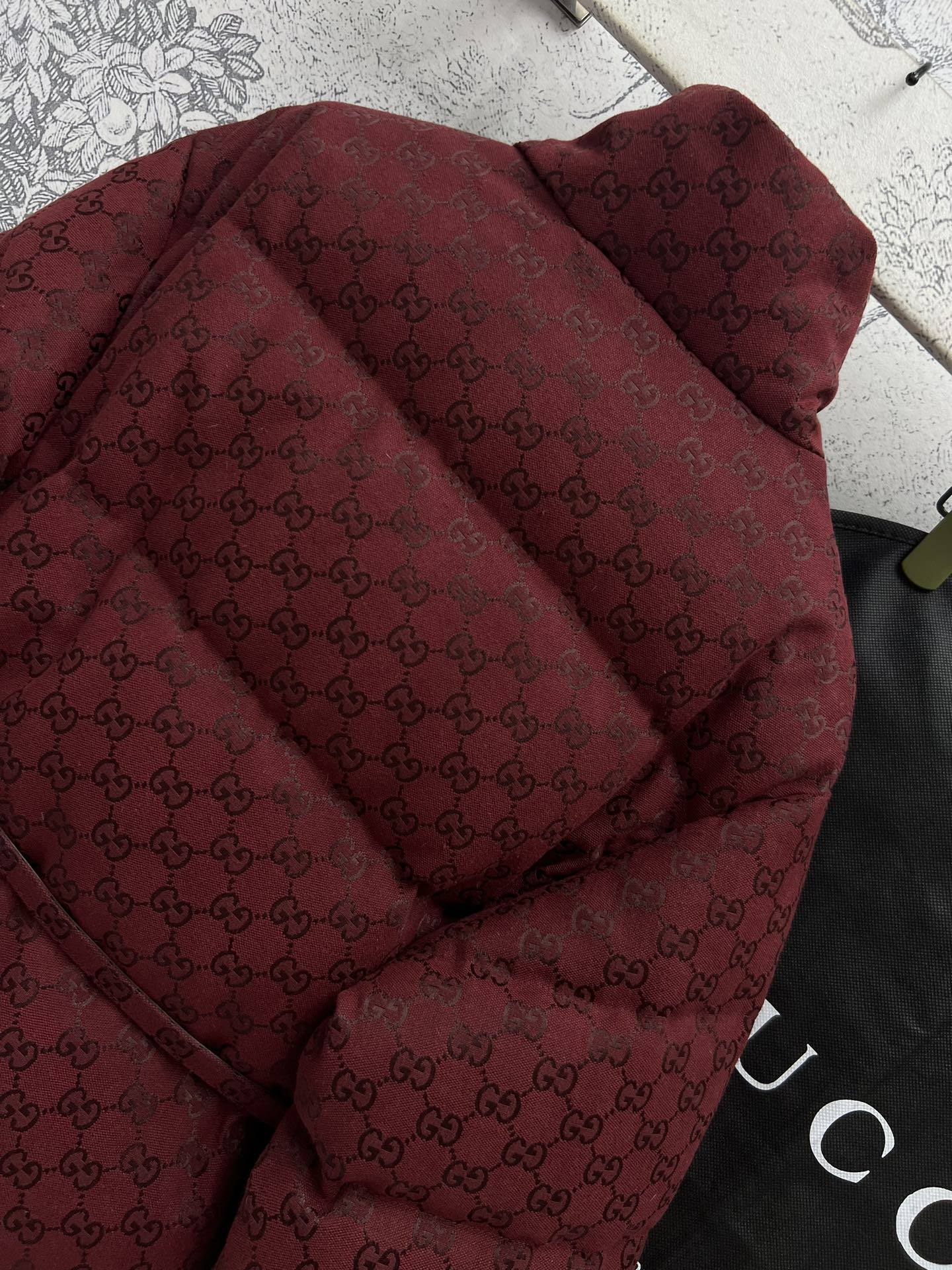Gucci Down Jacket Red Jacquard Fabric