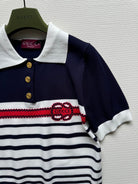 Gucci Striped Polo Knitted Top Dark Blue White Cotton
