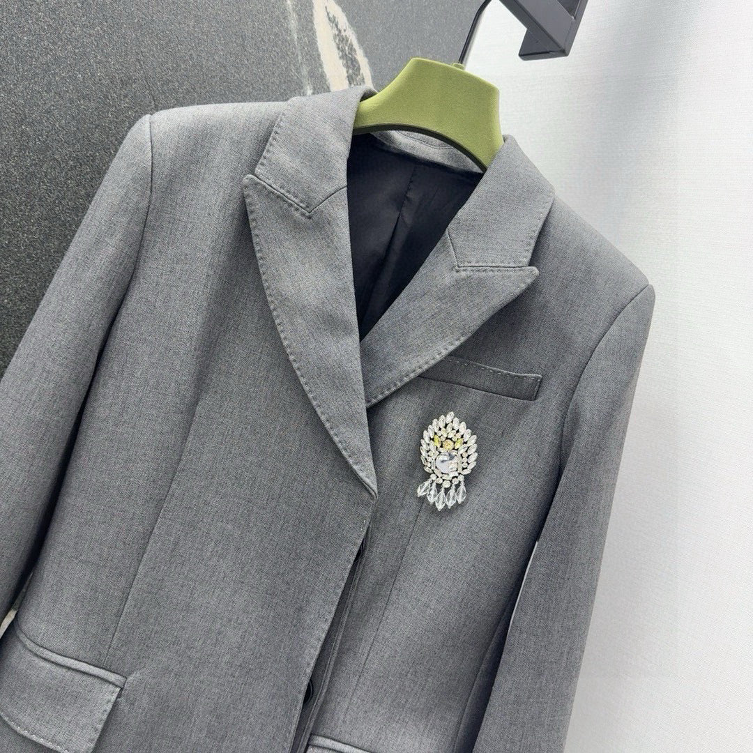 Gucci Quilted Jacket Beige Blue Polyester Fiber