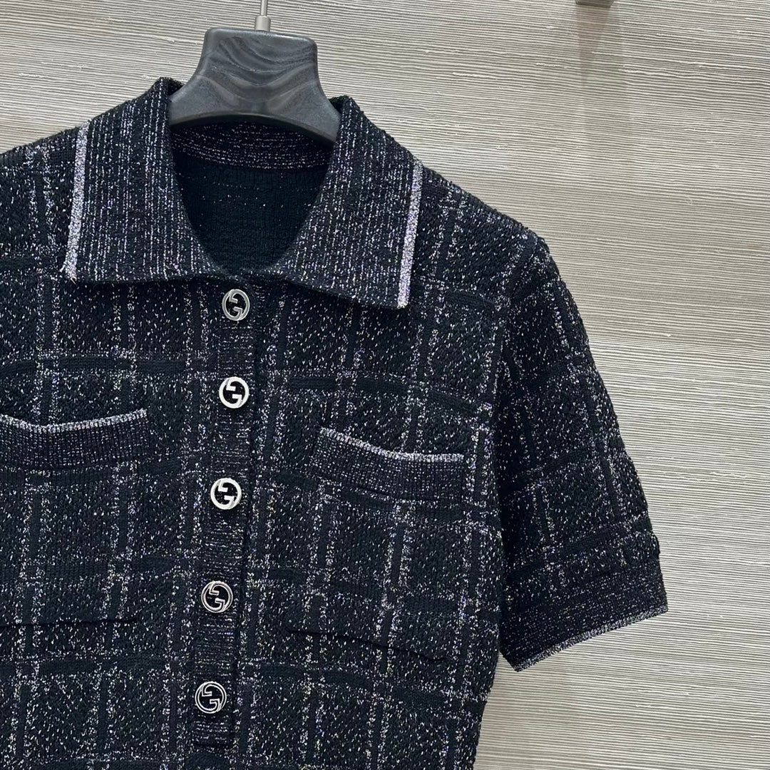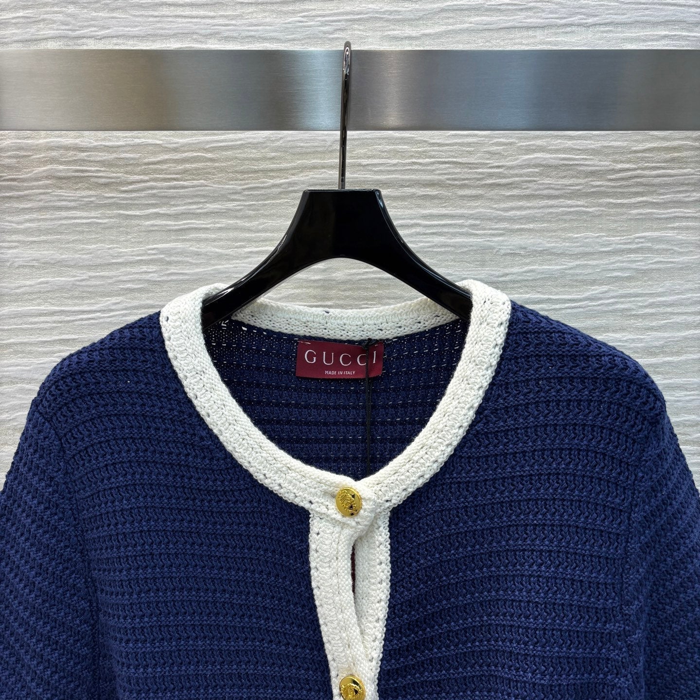 Gucci 25 Knitted Short-sleeved Cardigan Navy Blue Cotton