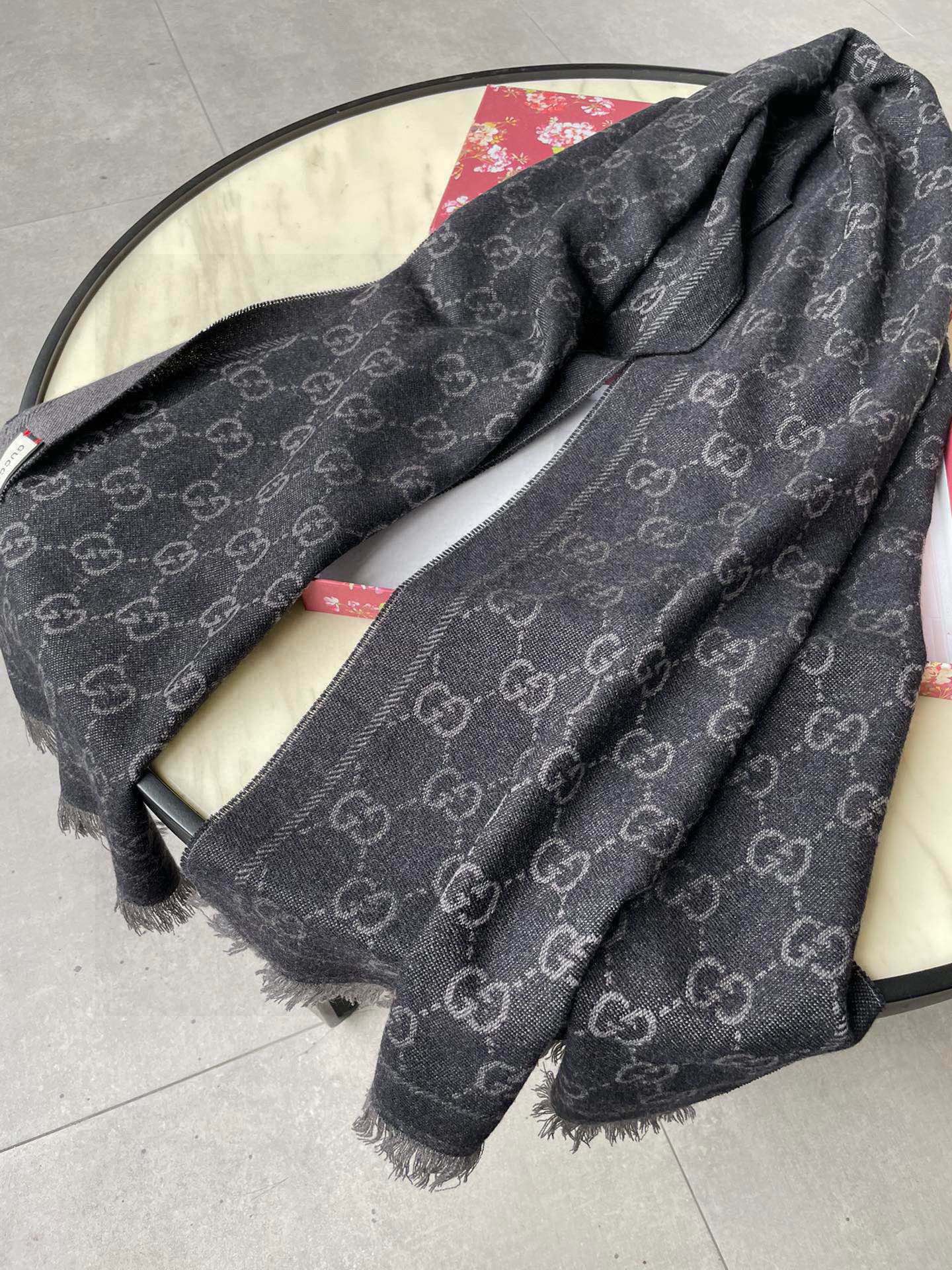 SCARF 180 CM IN BLACK GG PATTERN MONOGRAM WOOL 407525
