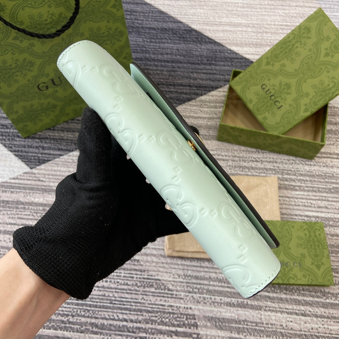 CONTINENTAL WALLET 19 IN MINT GREEN EMBOSSED CALFSKIN GOLD HARDWARE