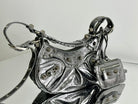 LE CAGOLE SMALL SHOULDER BAG 26 WITH RHINESTONES IN SILVER METALLIC ARENA LAMBSKIN