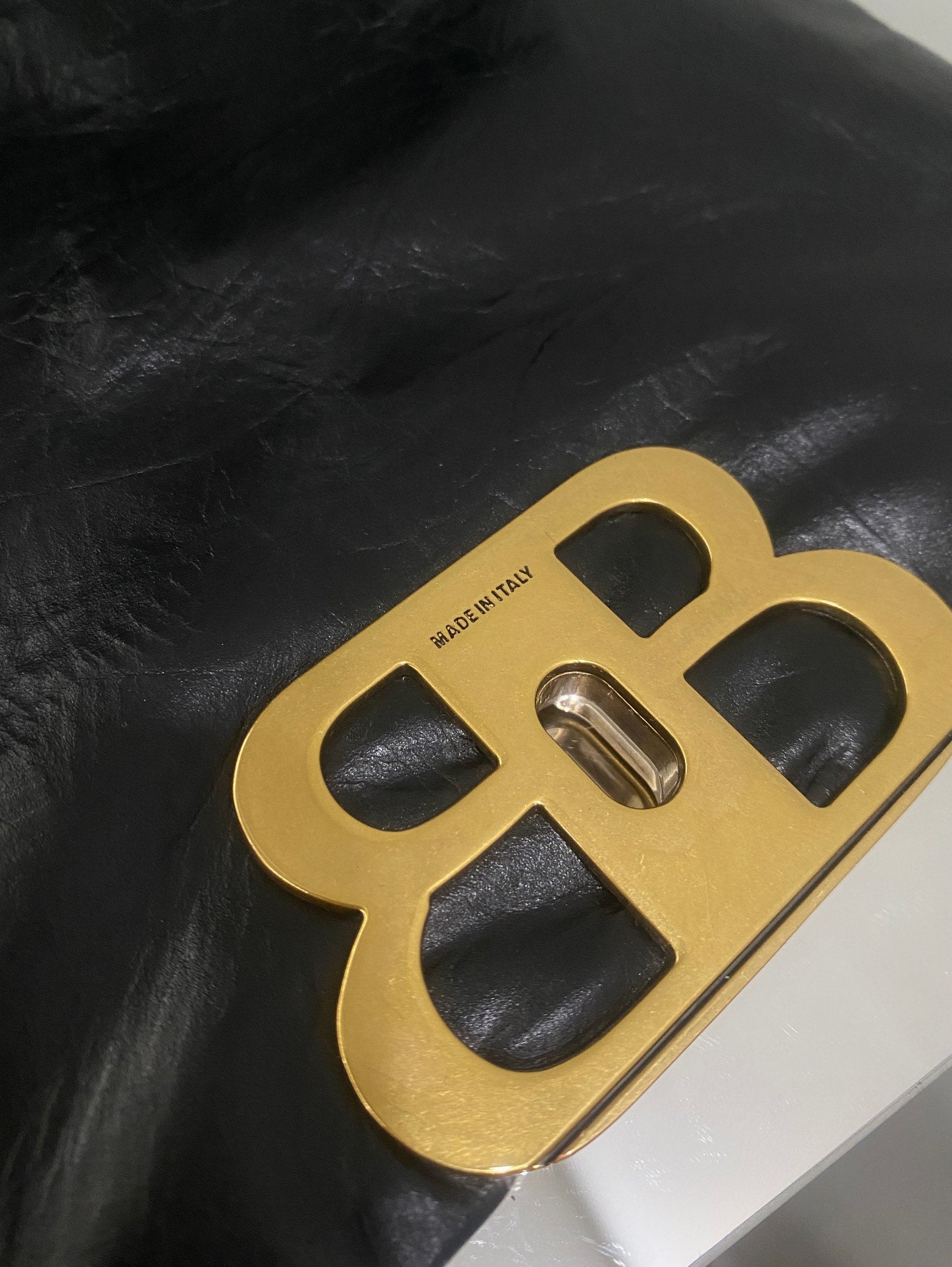 CRUSH SMALL TOTE BAG 26 IN BLACK CRUSHED CALFSKIN GOLD HARDWARE