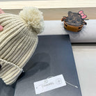 KNIT BEANIE HAT IN BEIGE WOOL 430242