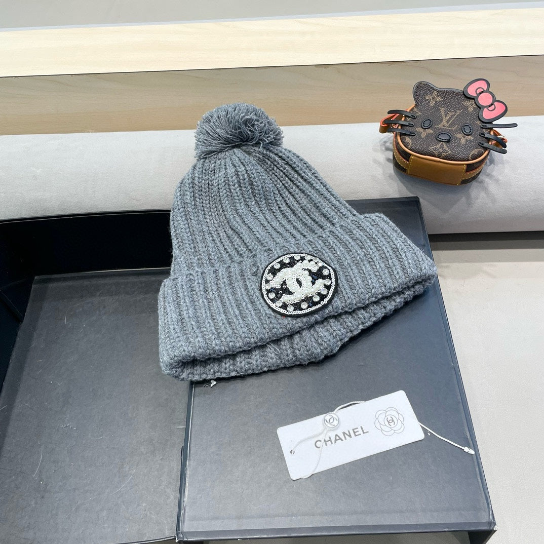 KNIT BEANIE HAT IN SHARK GRAY WOOL 430243