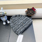 STRIPED KNITTED HAT IN DARK GRAY WOOL 424516