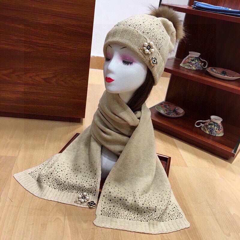 • Cashmere Knit Scarf, Hat, and Gloves Set