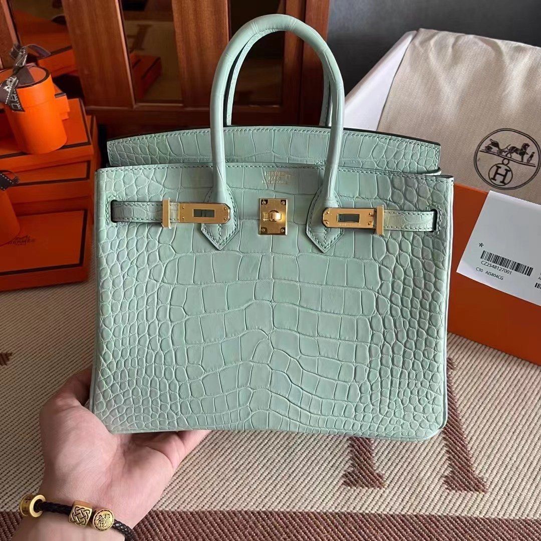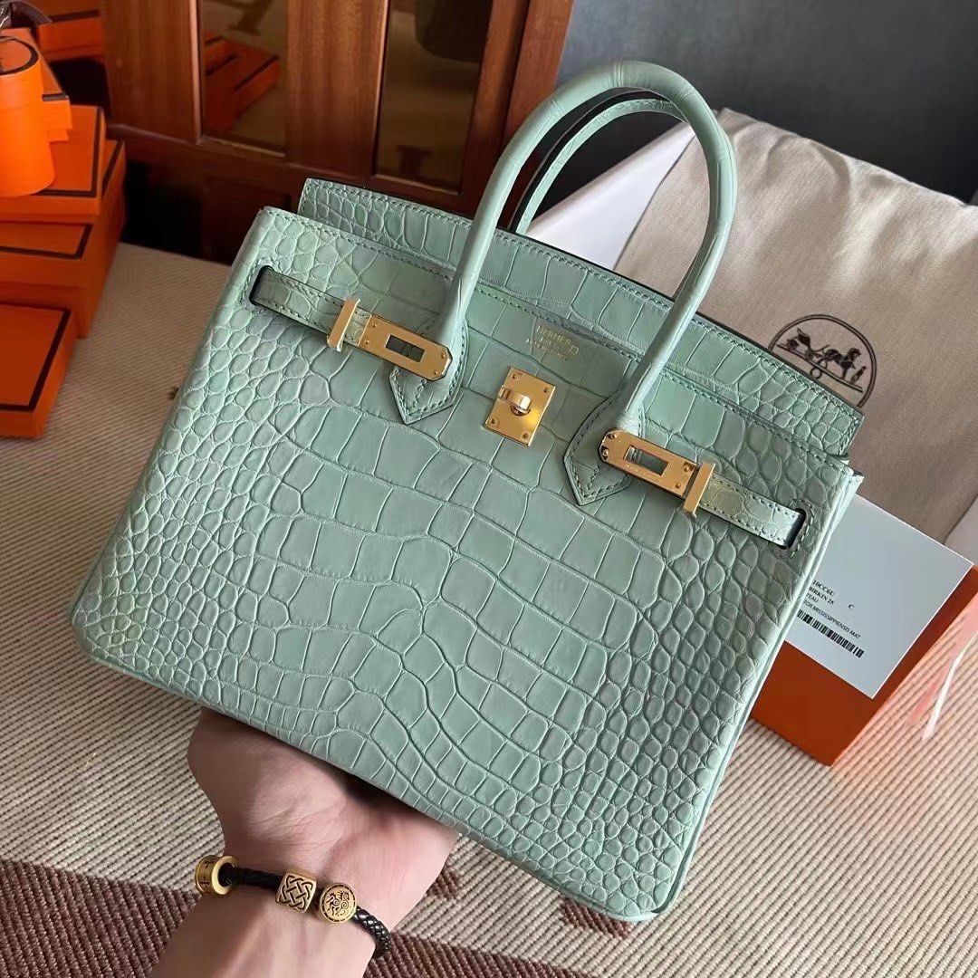 HM BIRKIN 25cm Vert Deau Crocodile Gold Hardware