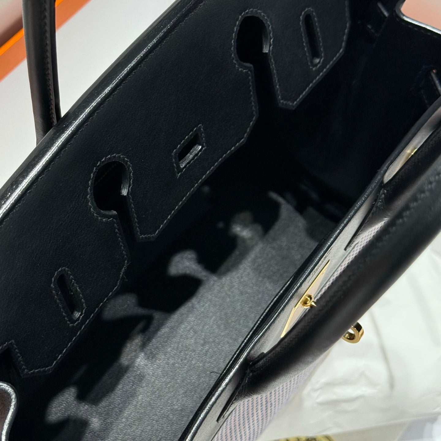 HM Birkin 30cm Black Swift Leather Dark Grey Canvas Gold Hardware