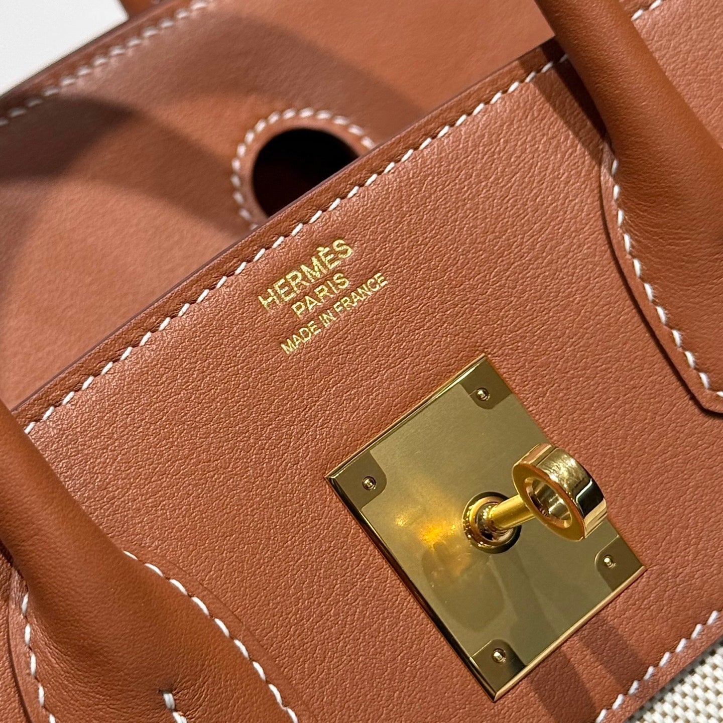 HM Birkin 30cm Gold Swift Leather Brown Canvas Gold Hardware