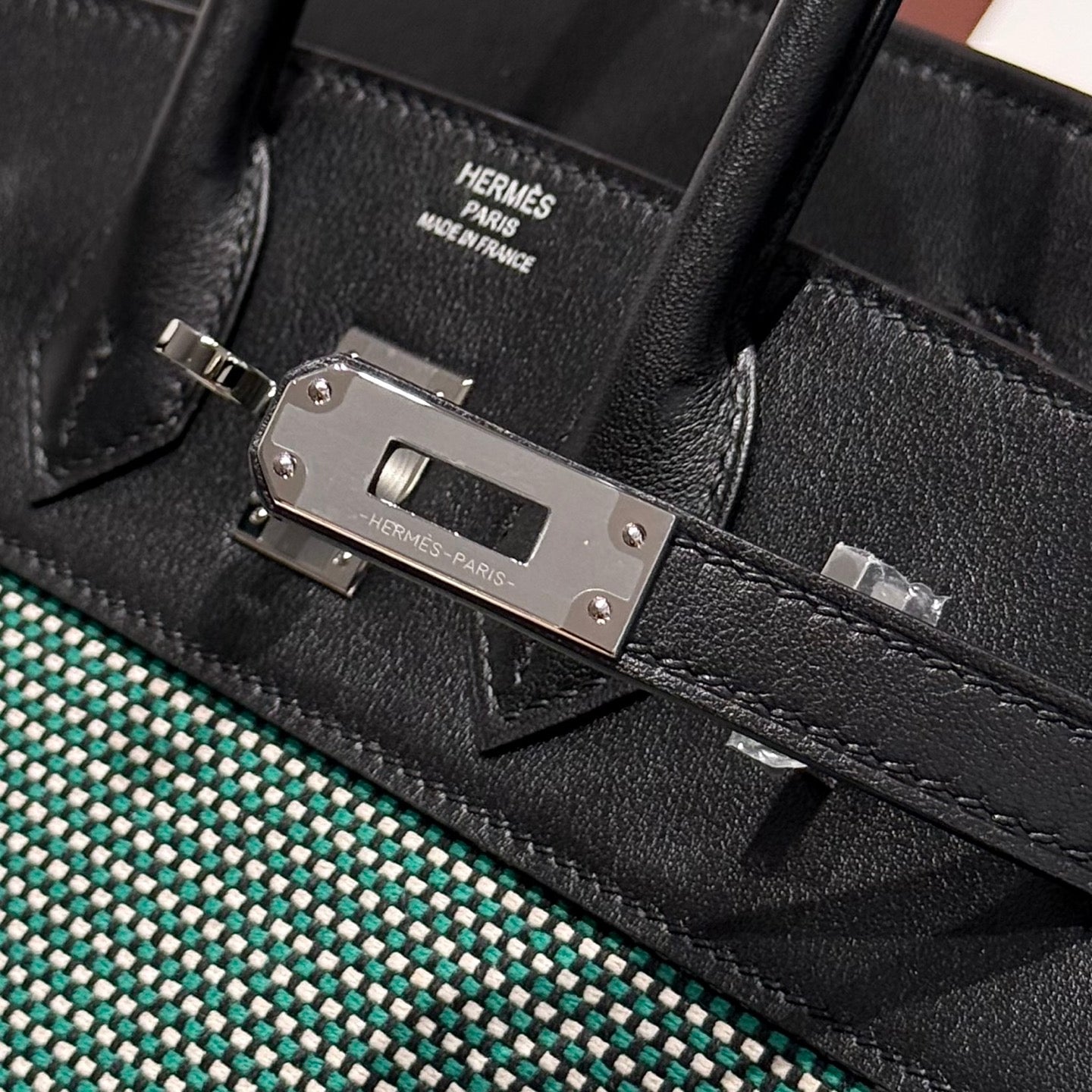 HM Birkin 25cm Black Swift Green White Canvas Silver Hardware