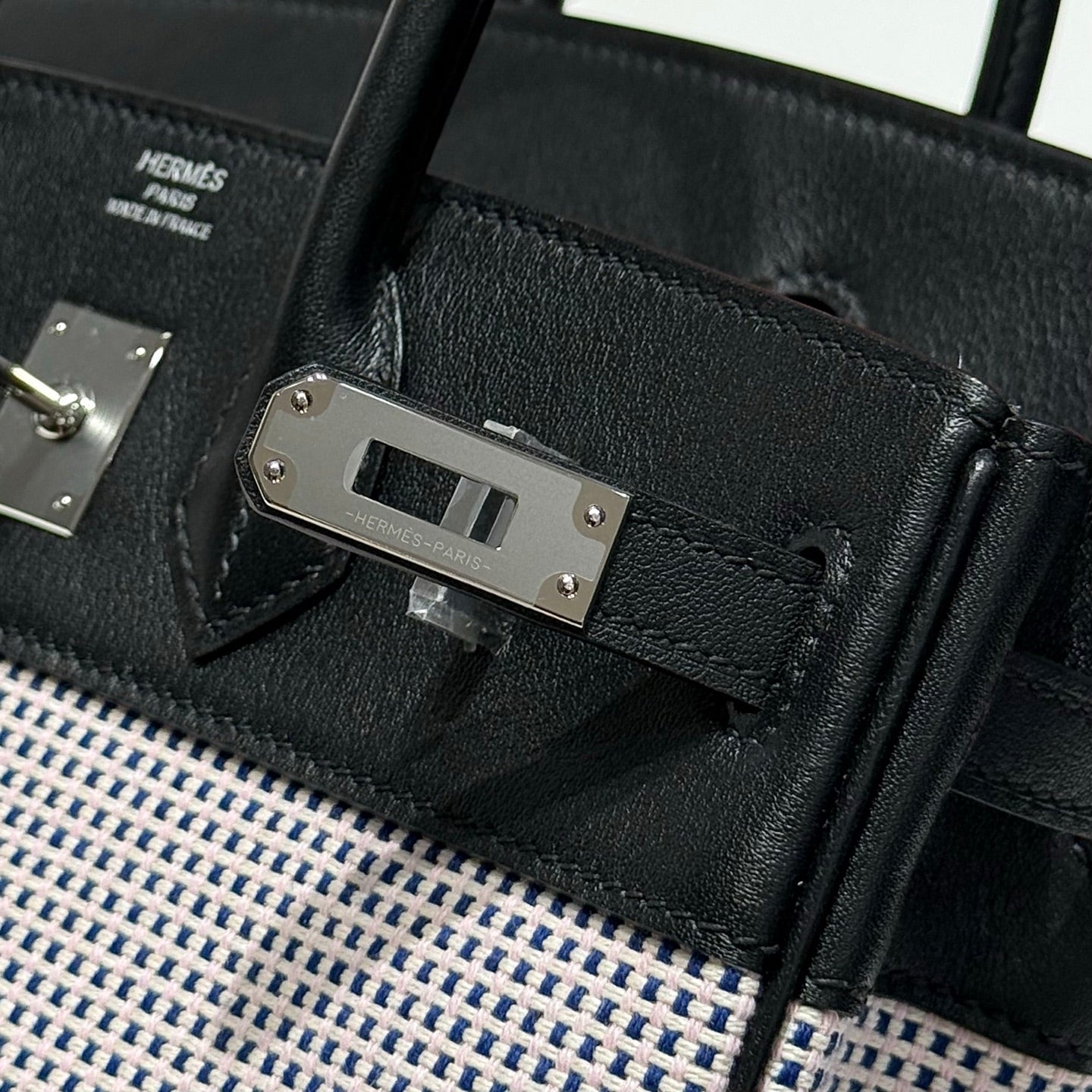 HM Birkin 30cm Black Swift Leather Pink Canvas Gold Hardware