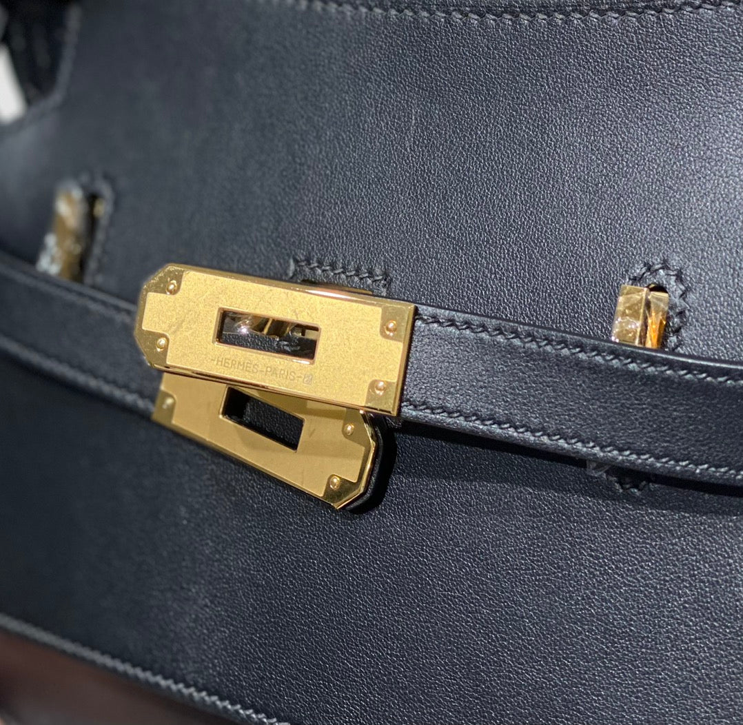 KELLY 23CM JYPSIERE BLACK LEATHER CROSSBODY BAG GHW