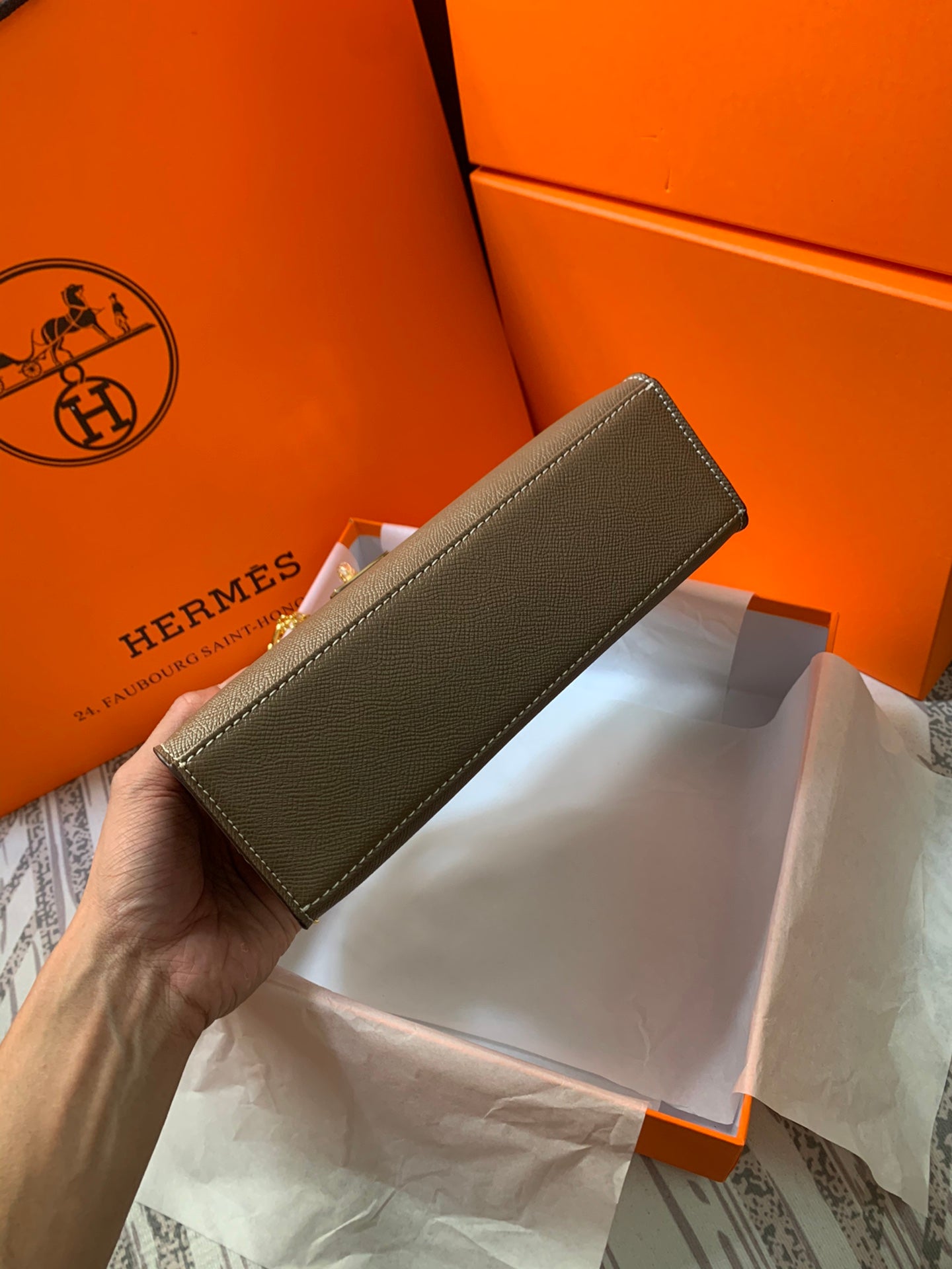 HM KELLY MINI POCHETTE 22 ASH BROWN EPSOM