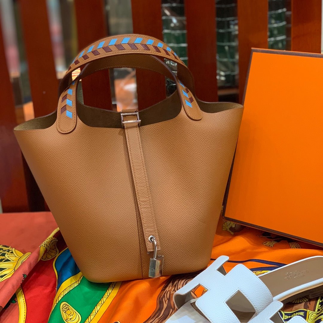 HM PICOTIN LOCK 22 COPPER EPSOM WITH BRAID STRAP