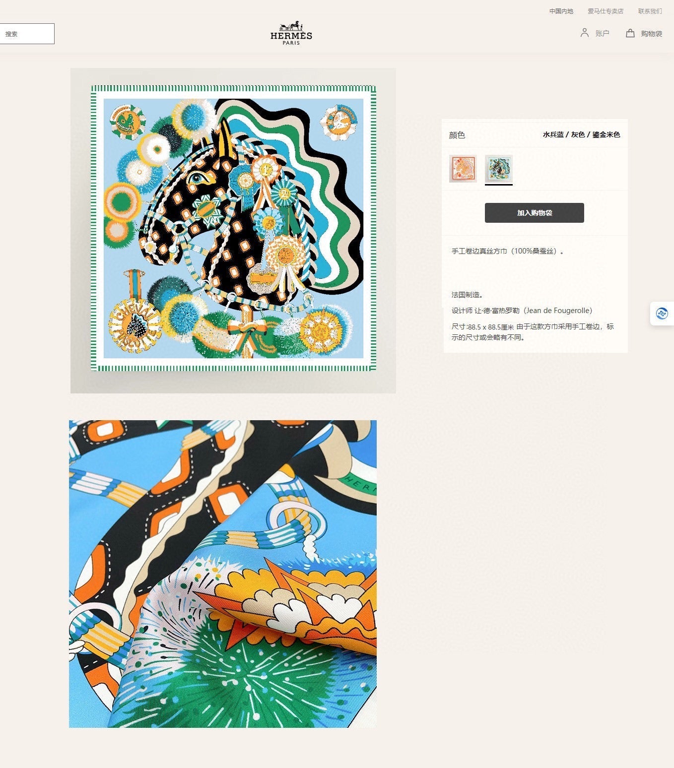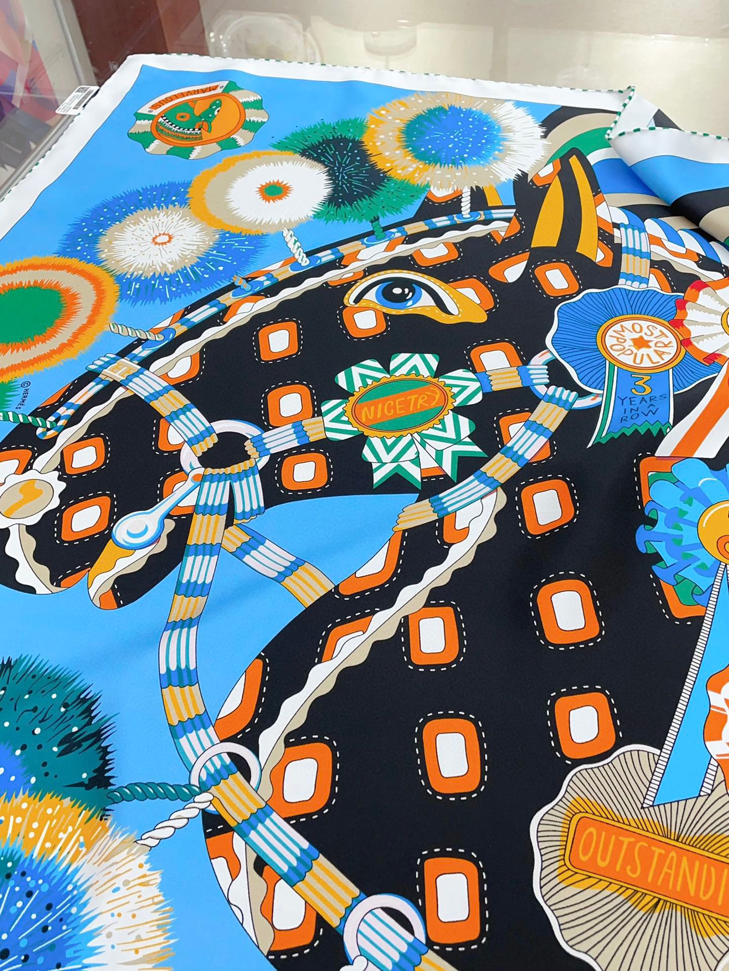 Cheval Mascotte Scarf 90 CM In Blue Colorful Silk Twill 206456