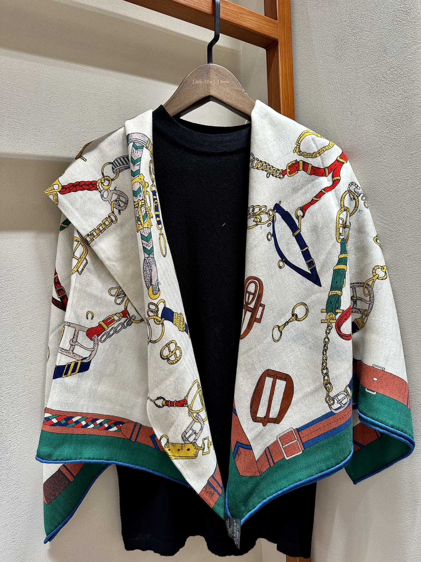 Chevaux Dechaines Shawl 135 CM IN Green Colorful Cashmere Silk 373684